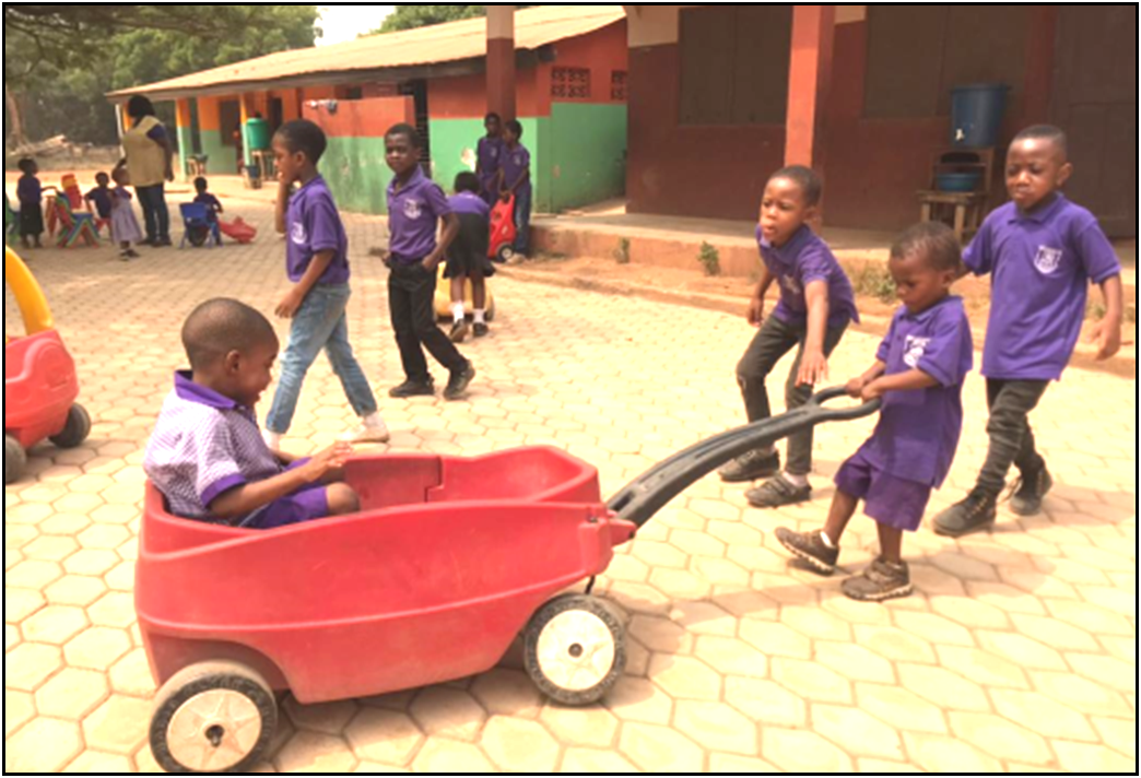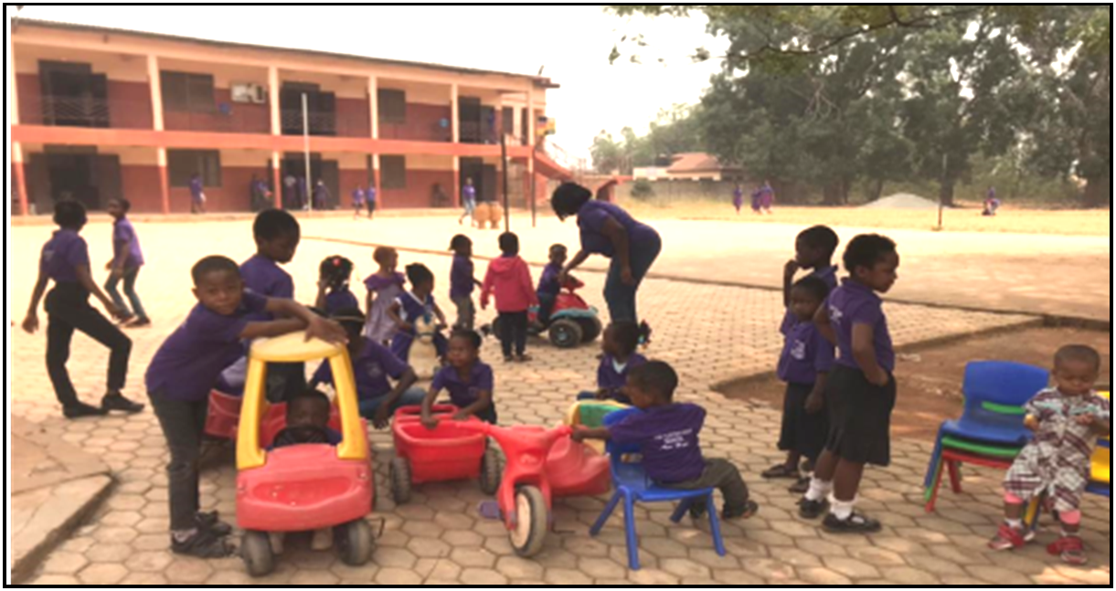 Sehr früh wurden auch ein Kindergarten und eine Schule gebaut, die dem Heim angeschlossen sind. In dem über 50 Jahren bestehenden Kinderheim, wurden viele der dort lebenden Kinder gut ausgebildet. Ab einem gewissen Alter besuchen sie Internate, die ihnen die Möglichkeit geben, gemäß ihren Begabungen und Neigungen, Berufe zu erlernen oder zu studieren. Mit der finanziellen Unterstützung des Heimes bzw. Stipendien, kann ihnen das ermöglicht werden. Während das Kinderdorf noch vor einigen Jahren etwas abseits lag, hat sich in der Zwischenzeit das ganze Gebiet weiterentwickelt und es sind viele Häuser in der Nachbarschaft entstanden. Die Kinder, die dort leben, haben die Möglichkeit, unseren Kindergarten und unsere Schule zu besuchen. Im Ghana ist es üblich, dass sowohl für Kindergarten als auch für Schule Gebühren anfallen. Über diesen Weg erhalten die Erzieherinnen und Lehrer ihre Gehälter. Außerdem wird vom Kinderheim auch ein Mittagessen zur Verfügung gestellt.