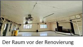 Durch das Dach regnete es herein und der Fußboden war durchgeweicht. Ein Gottesdienst im größeren Versammlungsraum war nicht mehr möglich. Die Gemeinde wächst stetig und eine grundlegende Renovierung war notwendig.