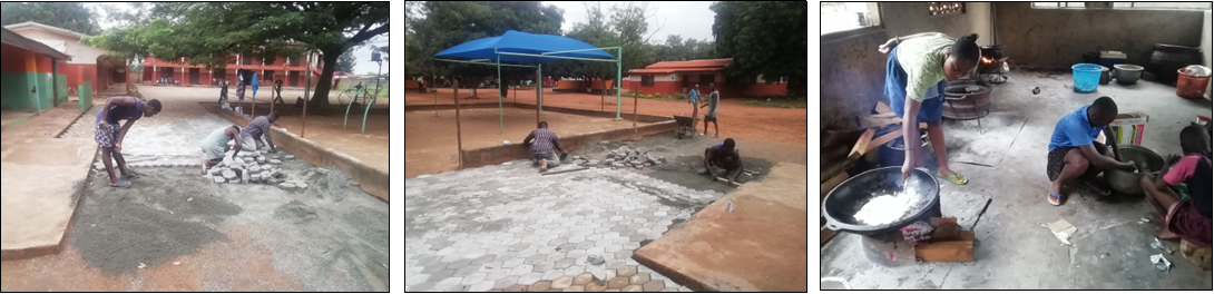 In den Ferien haben sie damit begonnen den Zugang zum Kindergarten und der Schule zu pflastern.
