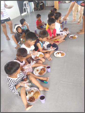In der Zweigstelle von CCC, die von Pastor Junnie el Kapitan betreut wird, hat man wieder eine Kinderspeisung durchgeführt. Die Frauen bereiteten mit Hingabe das Essen für die Kinder zu.