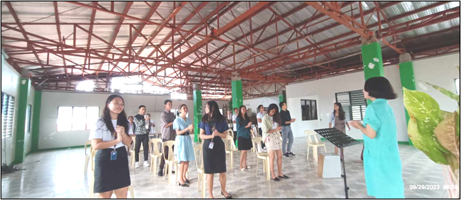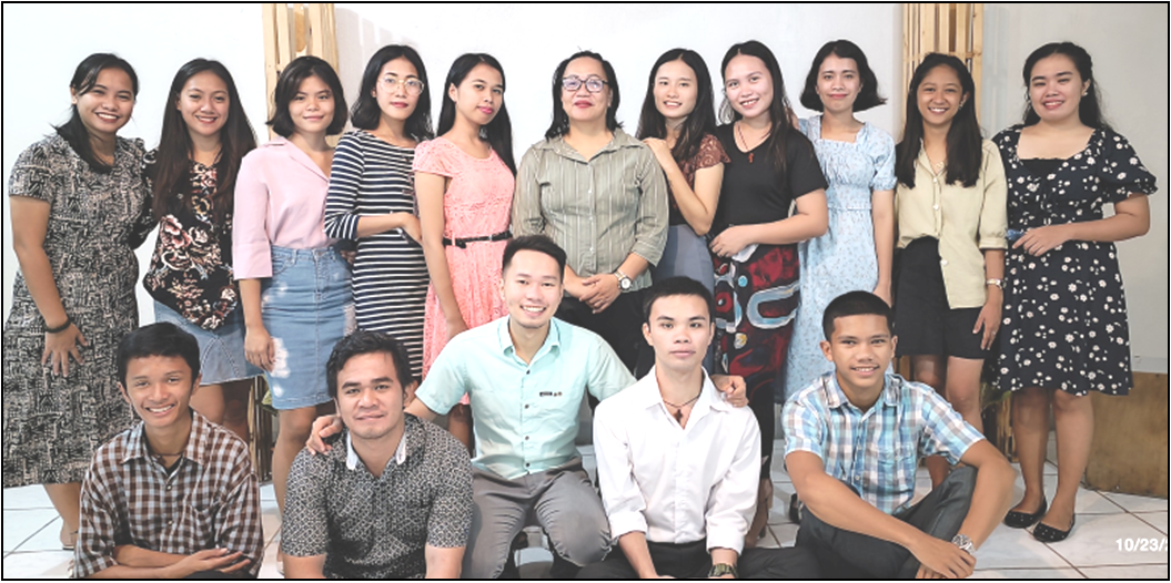 Ein fester Bestandteil des Lehrplanes sind die gemeinsamen Lobpreis– und Gebetszeiten, die im obersten Stockwerk der Bibelschule stattfinden. Auch wenn der Schaden durch den Taifun, der das Gebäude stark beschädigte, noch nicht behoben ist, lassen sich die Studenten davon nicht abhalten. Auf dem Bild unten in der ersten Reihe sind die Leiter Ronnie und Crezencia Congreso und die Lehrer.